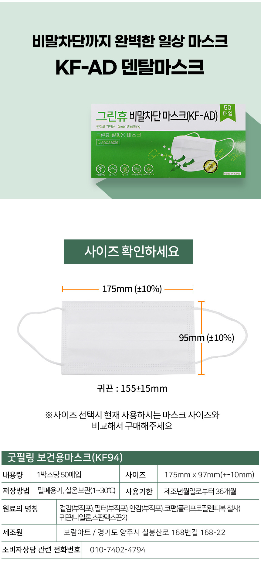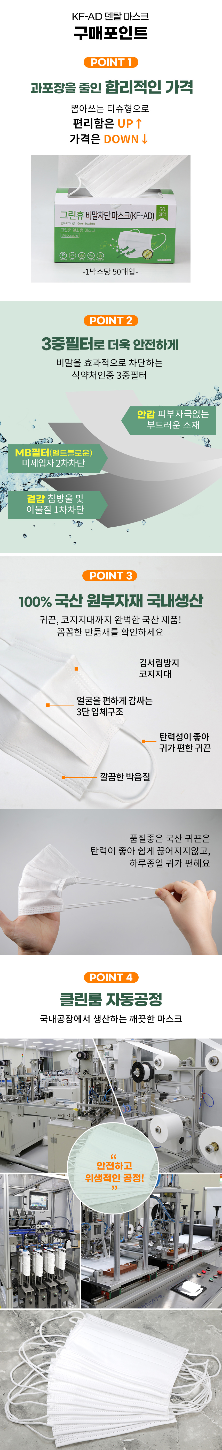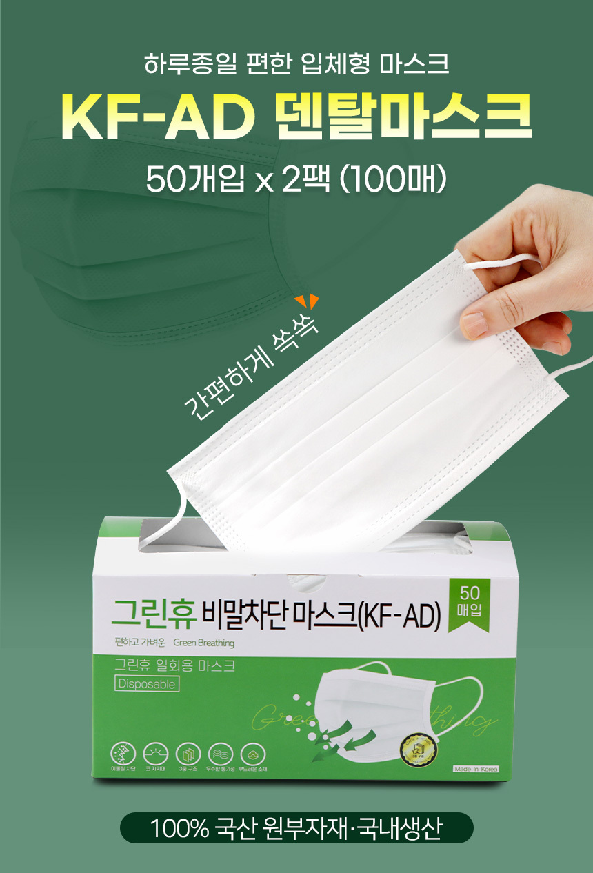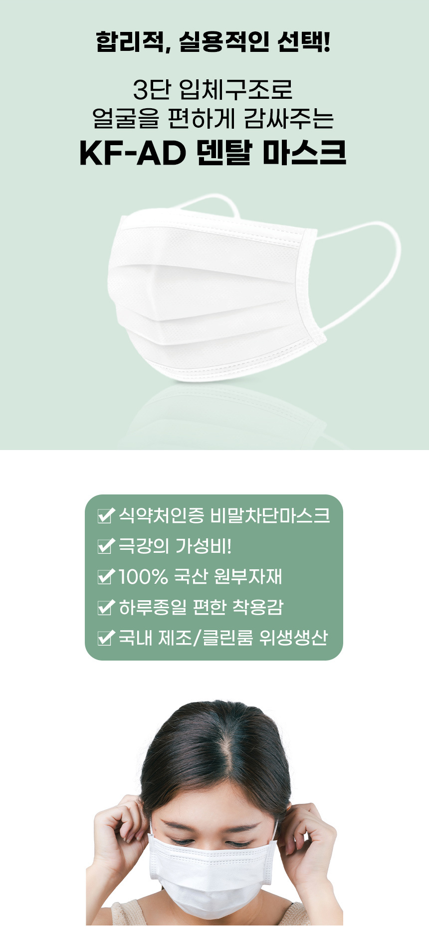 KF-AD droplet blocking dental mask 50 sheets x 2 packs / KF-AD 비말차단 덴탈마스크 50매입 x 2팩