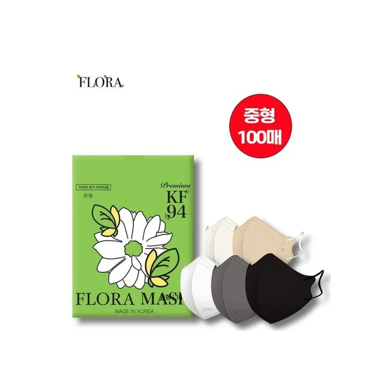 국내생산플로라 KF94 마스크 100장 [중형] Domestic Flora KF94 Mask 100 Pieces [Medium]