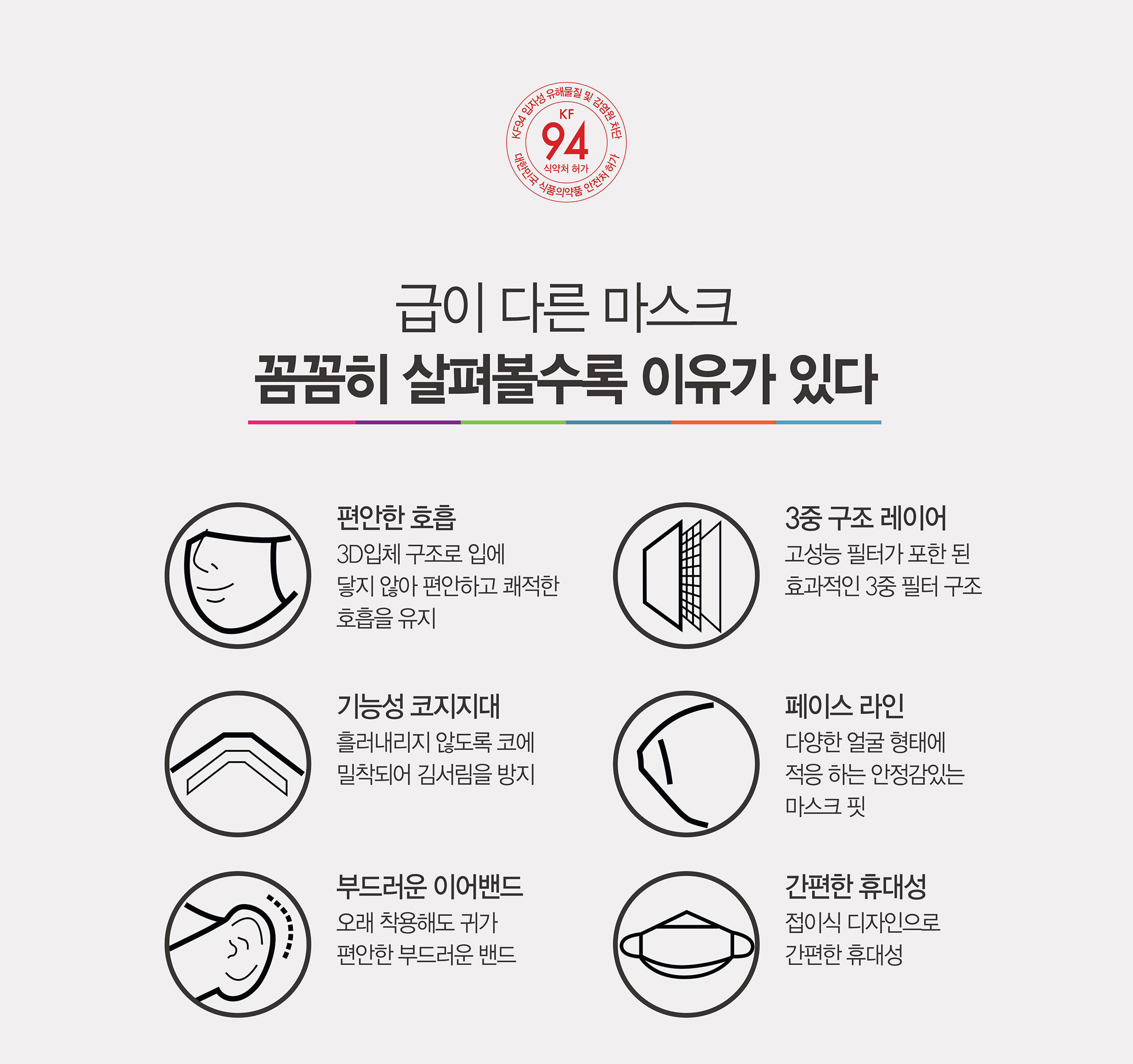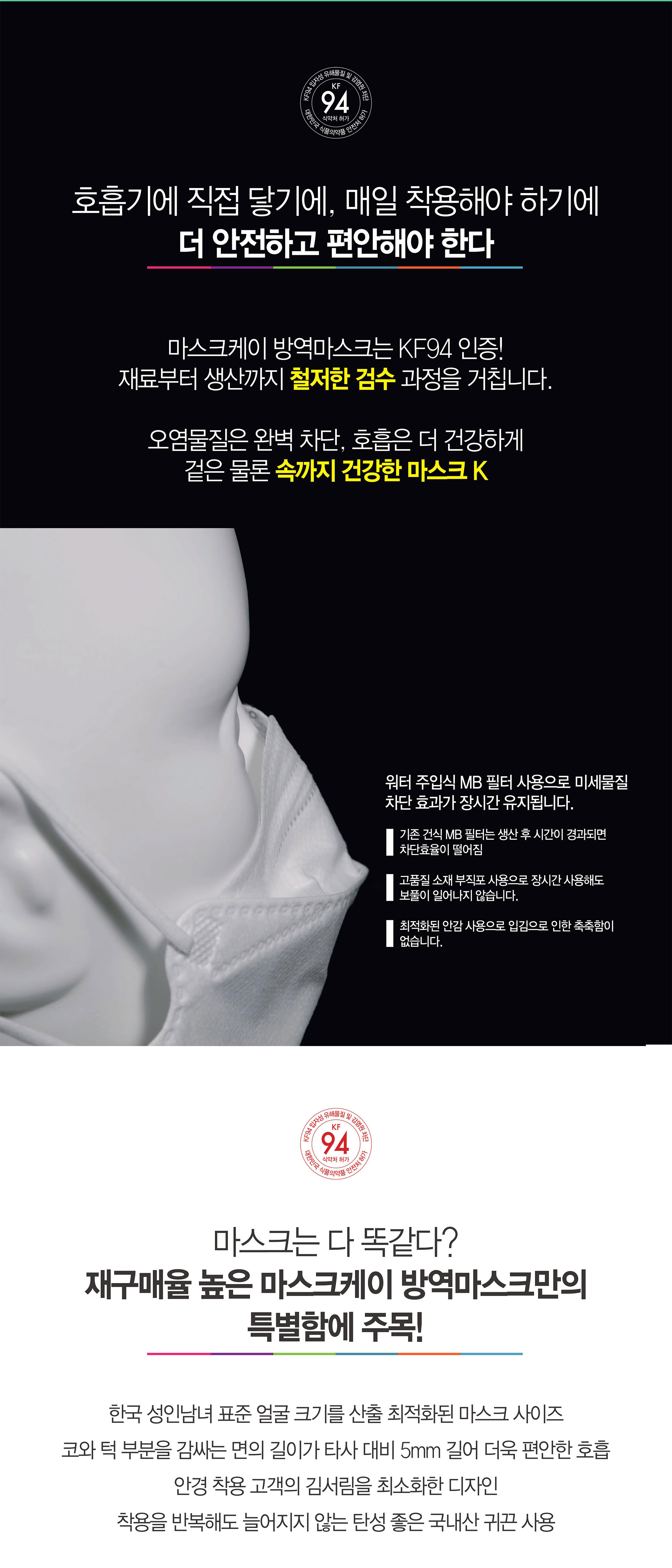 - High filtration efficiency (KF94 standard)