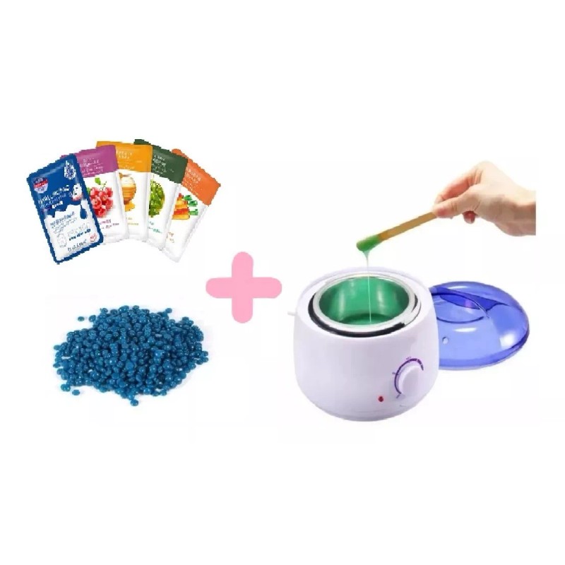 5 Mascarillas Hidratantes + 100 gr Cera + Fundidora Calentador Eléctrico de Cera .
