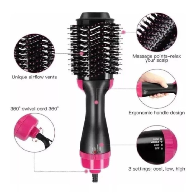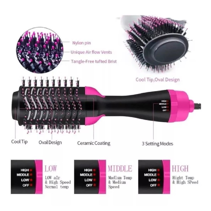 El diseno 6.3-en-1 (secador de pelo + rizador de pelo + peine) satisfará sus diferentes necesidades.
