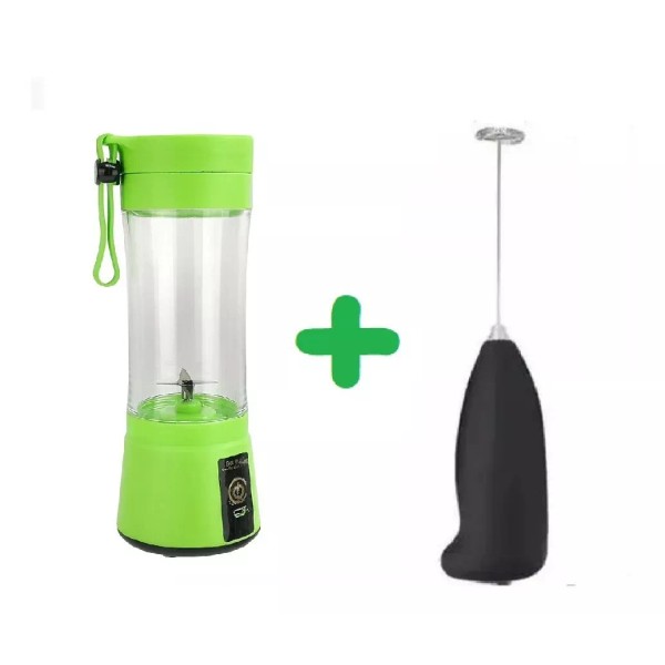 KFMX Mini Licuadora Shaker + Mini Batidor Espumador Personal