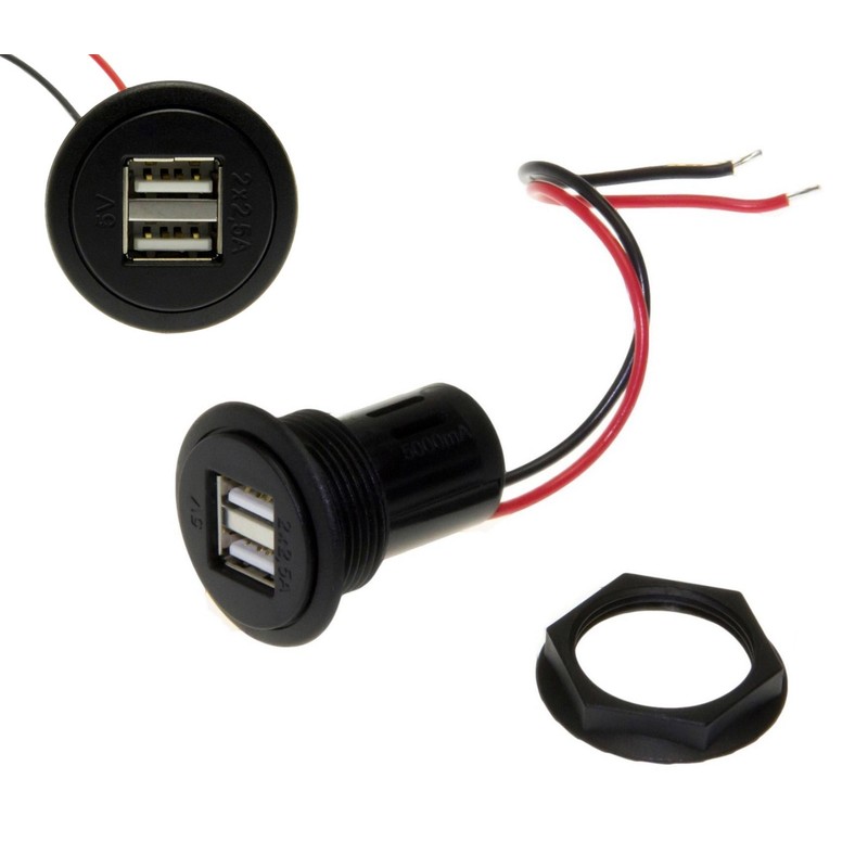 KFZ Auto Doppel USB 5V 2 x 2,5A Recessed socket 12-24V