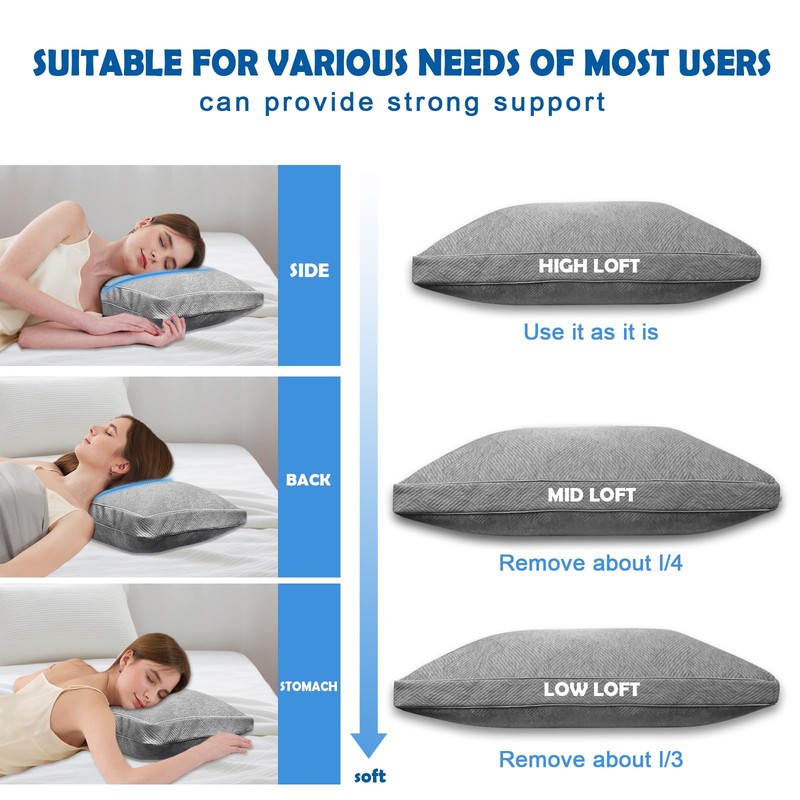 - Adjustable height: The KGAUT pillow is filled with memory foam. During use, you can freely remove foam and adjust the pillow to a height suitable for your sleep, but this will not affect the support of the pillow