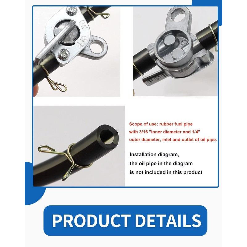 - Design: the fuel tank tap switch has a square design with rounded outer corners, which is not easy to hurt. Open and close fuel valves at both ends.
