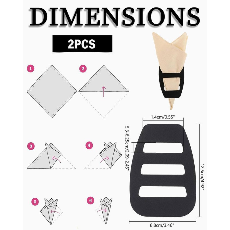 • Application: the square men's suit accessories are suitable for both men and women. When you attend dinner parties and gatherings, just choose your preferred square scarf style, make your preferred square fold, pass the square holder organiser and put it in your bag!