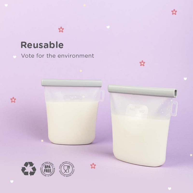 El paquete de 5 bolsas herméticas reutilizables es perfecto para almacenar y llevar a todas partes la leche materna, snacks, alimentos, frutas o todo lo que quieras conservar limpio y seguro para tu bebé. Pueden estar tranquilos de que la silicona de grado alimenticio libre de BPA es un material fuerte y seguro para tu bebé; utilizamos este material en casi todos nuestros productos para bebé (chupones; portachupones, mordederas, baberos, kits de seguridad). Estamos presentes en México y Estados Unidos.