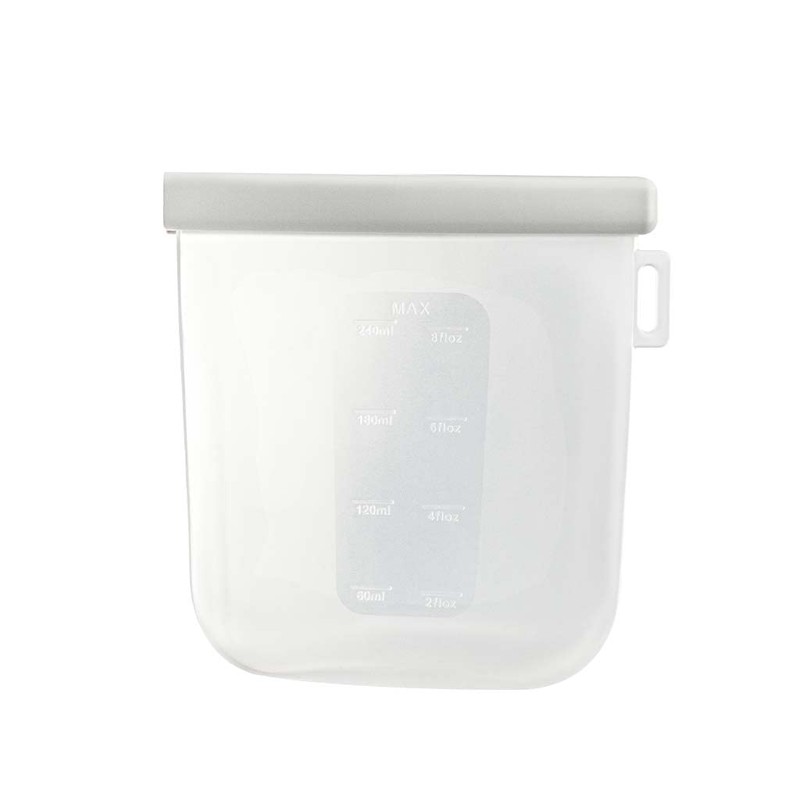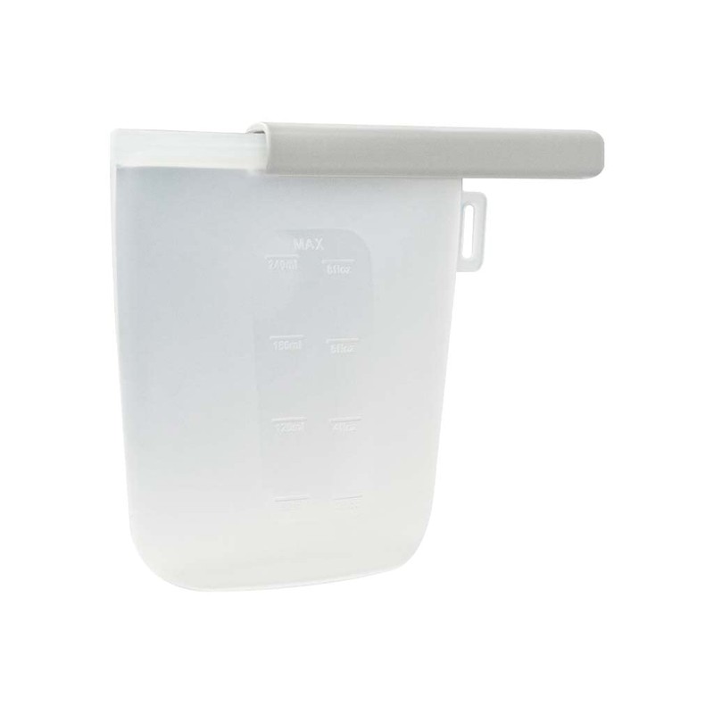 - El MATERIAL TRANSPARENTE y las líneas de medición te permiten ver los alimentos almacenados o la cantidad de leche materna en la bolsa