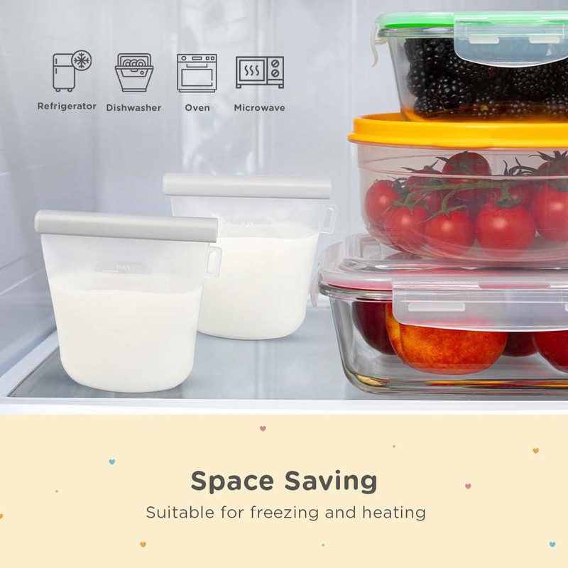 El paquete de 5 bolsas herméticas reutilizables es perfecto para almacenar y llevar a todas partes la leche materna, snacks, alimentos, frutas o todo lo que quieras conservar limpio y seguro para tu bebé. Pueden estar tranquilos de que la silicona de grado alimenticio libre de BPA es un material fuerte y seguro para tu bebé; utilizamos este material en casi todos nuestros productos para bebé (chupones; portachupones, mordederas, baberos, kits de seguridad). Estamos presentes en México y Estados Unidos.