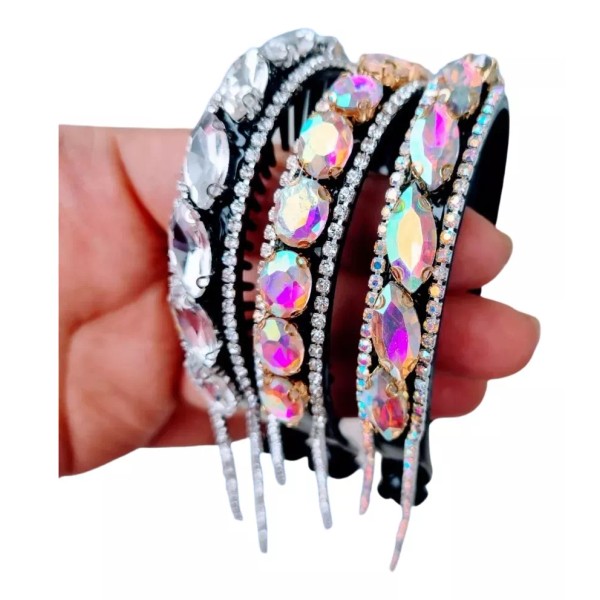 Pinza para coleta de cabello con piedras de fantasía. Elegante y sutil.