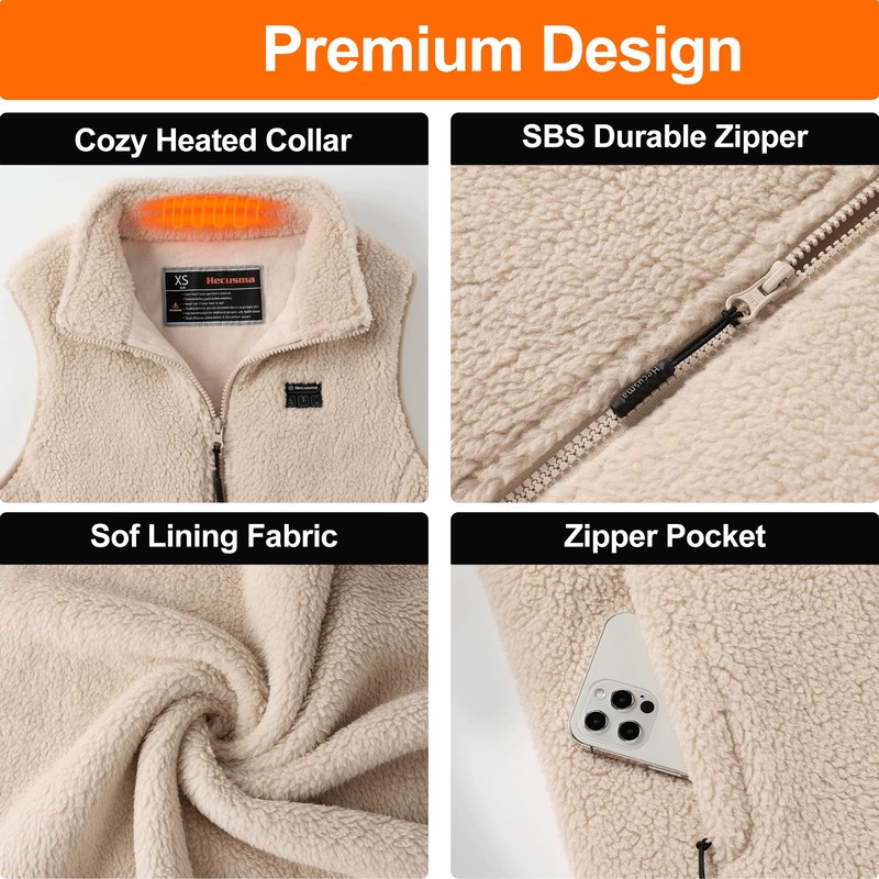 - COMFORTABLE EXPERIENCE, UNLIMITED: Our women's heated vest is made of skin-friendly wool fabric, windproof and wear-resistant outer layer, imitation lamb velvet locks the temperature on the inner layer, and the turtleneck design doubles. Lightweight and breathable, it won't sweat after wearing it for a long time, and it won't look swollen in winter. Multi-pocket design inside and outside, with high-quality YKK zippers, easy to store personal items, making outdoor activities more convenient