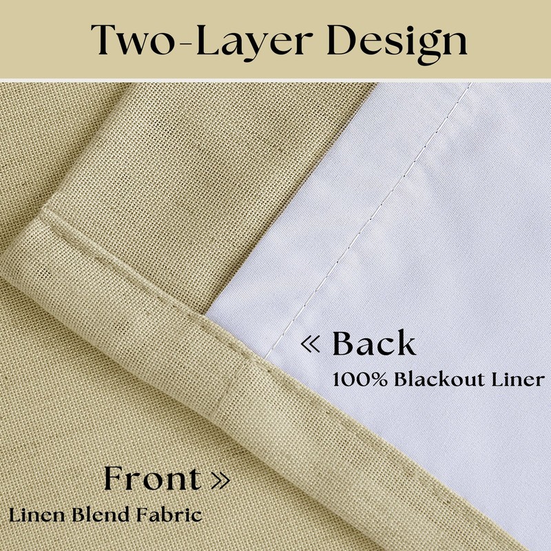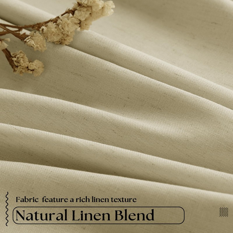 - Aesthetics & Functionality : Linen element of these blackout curtains brings a delicate look and natural aesthetics. Textured Linen drapes in neutral tone add a refreshing charm to your window. Provide thermal insulation and energy savings, reducing noise and light interference for a more comfortable feeling. Good choice for bedrooms, nursery, living rooms, offices, patio door