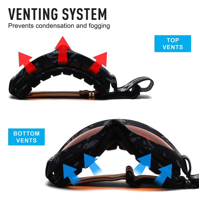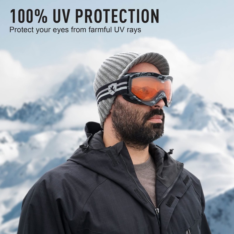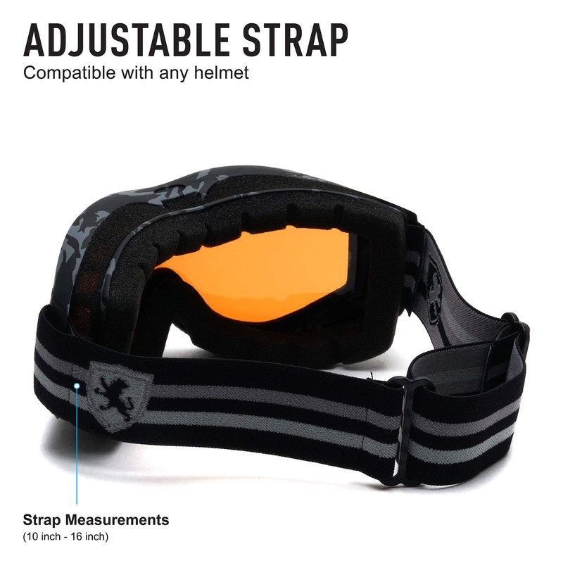 Khan Night Camo - Adjustable Snow Goggles for winter skiing and snowboard with 100% UV Protection. One size fits all.