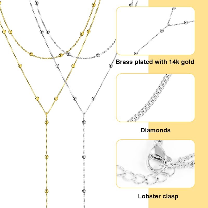 Unique shape: double-row Y-shaped chain with round gold beads, rich layers and unique shape, which can easily change the neck line and show the feminine beauty.