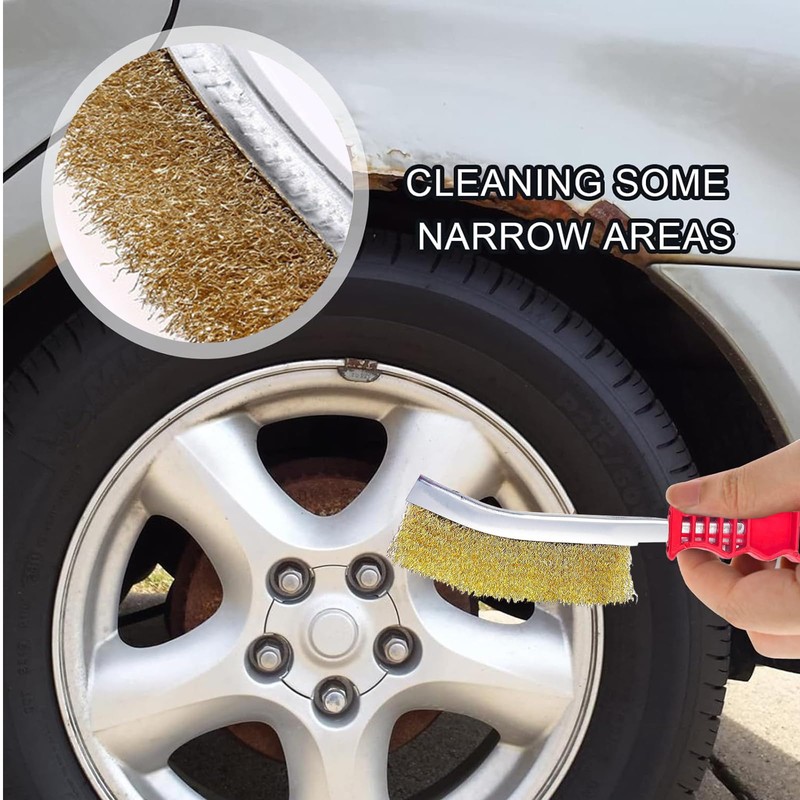 - Multifunctional: wire brushes can not only be used for removing rust, but also for cleaning and polishing. Metal brush suitable for various surface materials such as metal, wood, ceramic tiles, etc. Brass wire brush removes stains, grease and other hard-to-clean dirt and restores a high-gloss surface