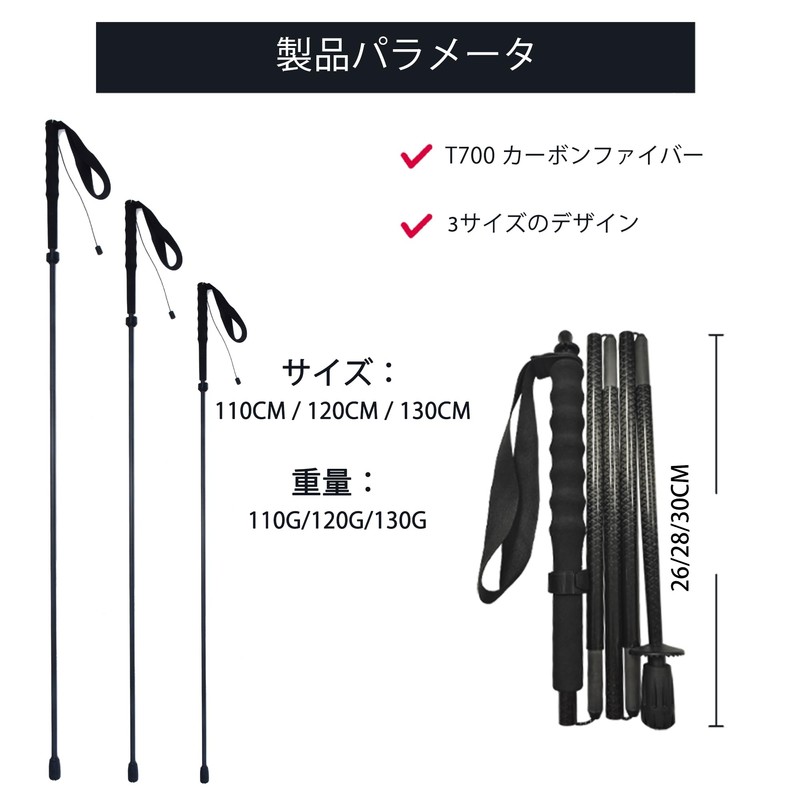 - 超軽量&コンパクト設計:重量わずか130g ±3g、折りたたみ時は30cm ±5mmと超コンパクト。バックパックに簡単に収納可能で、持ち運びに最適なトレッキングポールです。