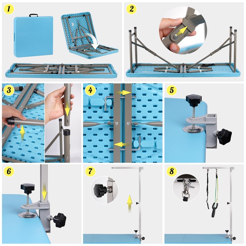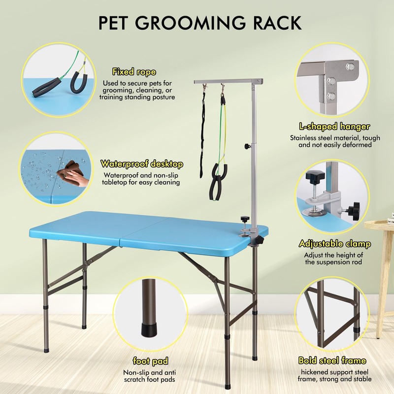 - In summary, our pet grooming table is an essential tool for anyone who loves their pet. It is easy to store, easy to clean, and comes with all the features you need to ensure your pet remains safe and comfortable throughout the grooming process.
