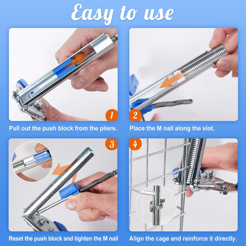 KHEARPSL Type M Hog Nail Ring Pliers Kit with 4200pcs M Hog Rings for Wire Cage Building, Wire Net Panel Fence Fastening (Pliers with 4200pcs Rings)