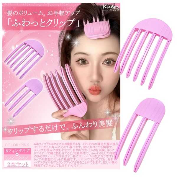 Khers "Fluffy Clip" 3 Fin + 6 Fins Set of 2 Root Stand Up Clip Bangs Clip