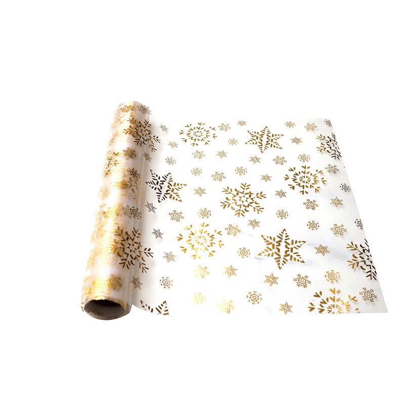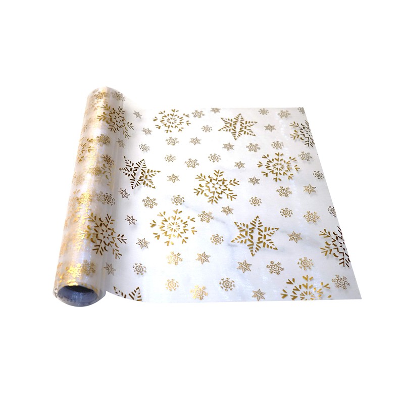 - Organza fabric transparent: The table runner role consists of organza. This organza fabric shimmers slightly white and is printed with snowflakes.