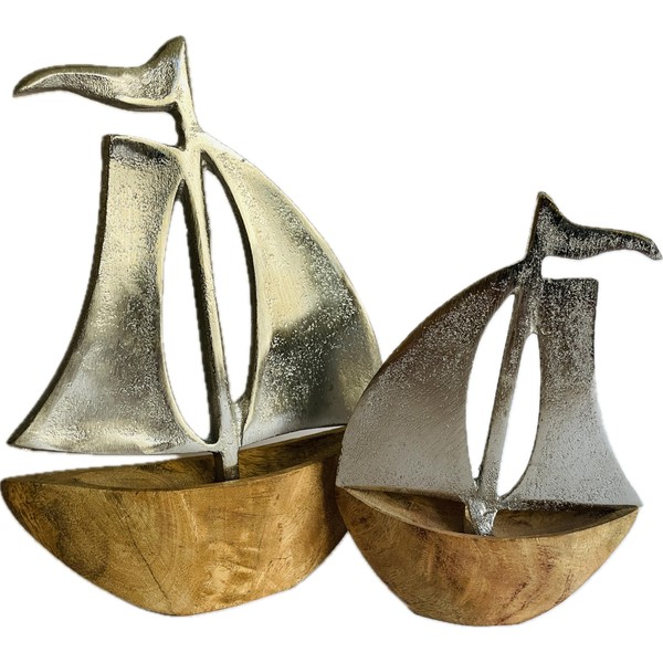 - Maritime decoration in a set of 2: this decorative sailboat set made of mango wood and metal brings a stylish maritime atmosphere to your home. The set contains two different sizes (10 x 14 cm and 13 x 18 cm), which can be placed on window sills, shelves or as a table decoration. Perfect for the living room, bathroom or any room that needs a nautical touch. These sailing boats are a real eye-catcher and can be harmoniously combined with other maritime decorative elements.