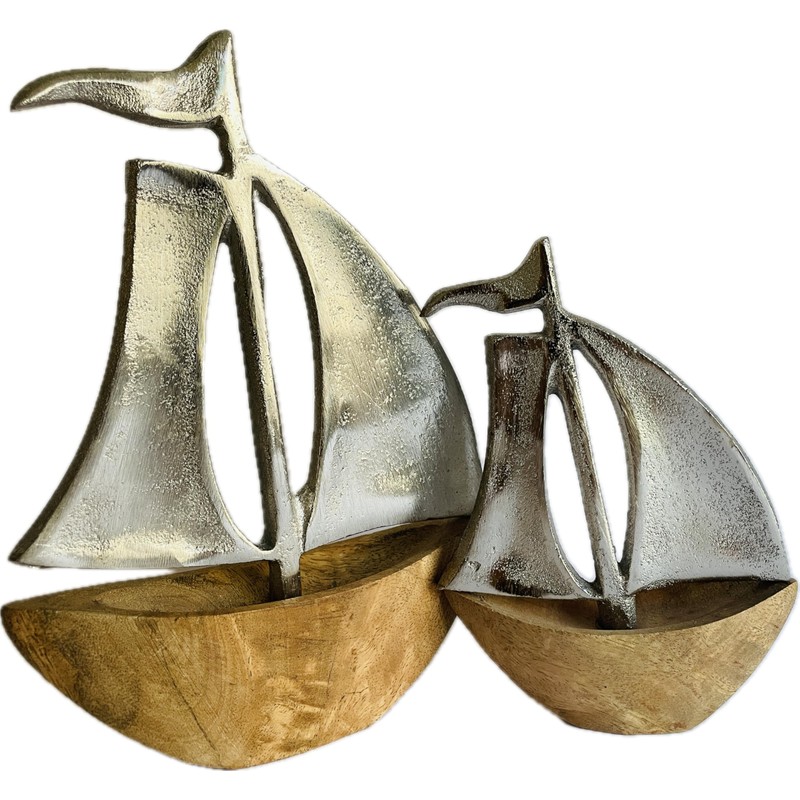 - NATURAL MANGO WOOD & ELEGANT METAL: The hull of the boats is made of high-quality mango wood, a natural raw material that gives each piece an individual grain and colour. The sails are made of durable metal and give the boats a modern yet rustic look. This combination of wood and metal provides a timeless design that matches both modern and classic interior styles.
