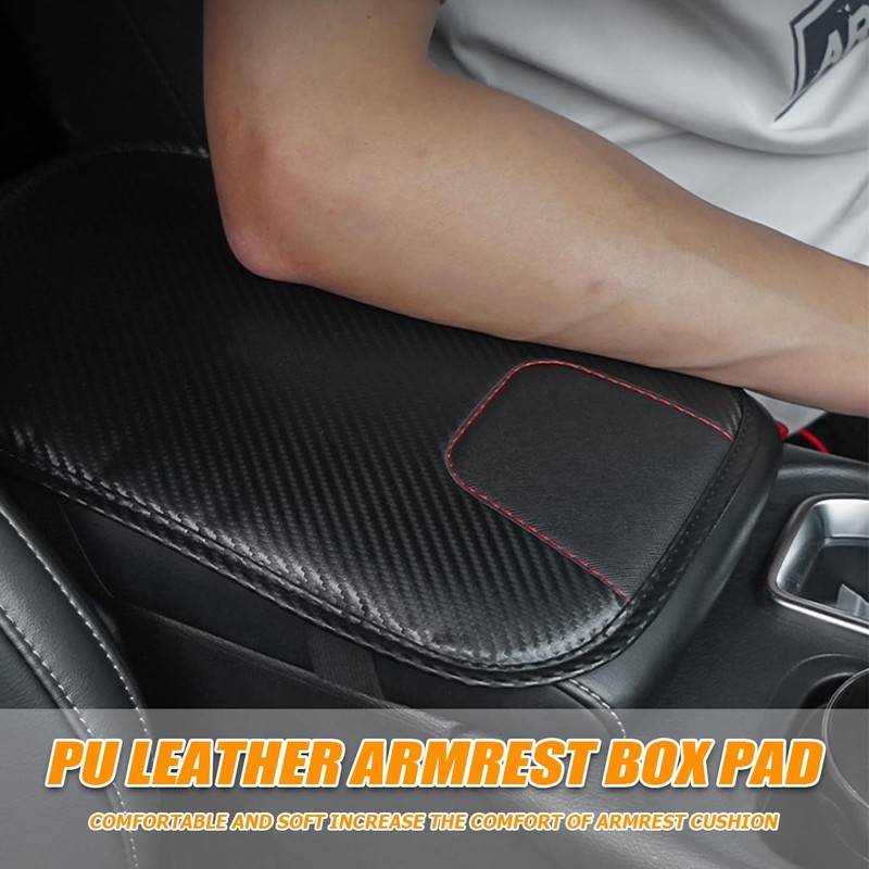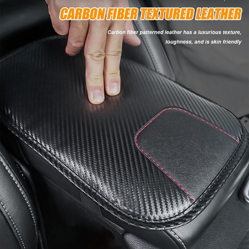 - 【High Quality Material】: This car armrest box mat is made of carbon fiber leather, which not only enhances the visual effect and texture of the vehicle's interior, but also excels in practicality and durability, and is very resistant to abrasion and scratches, making it an ideal choice for car owners who seek both quality and aesthetics.
