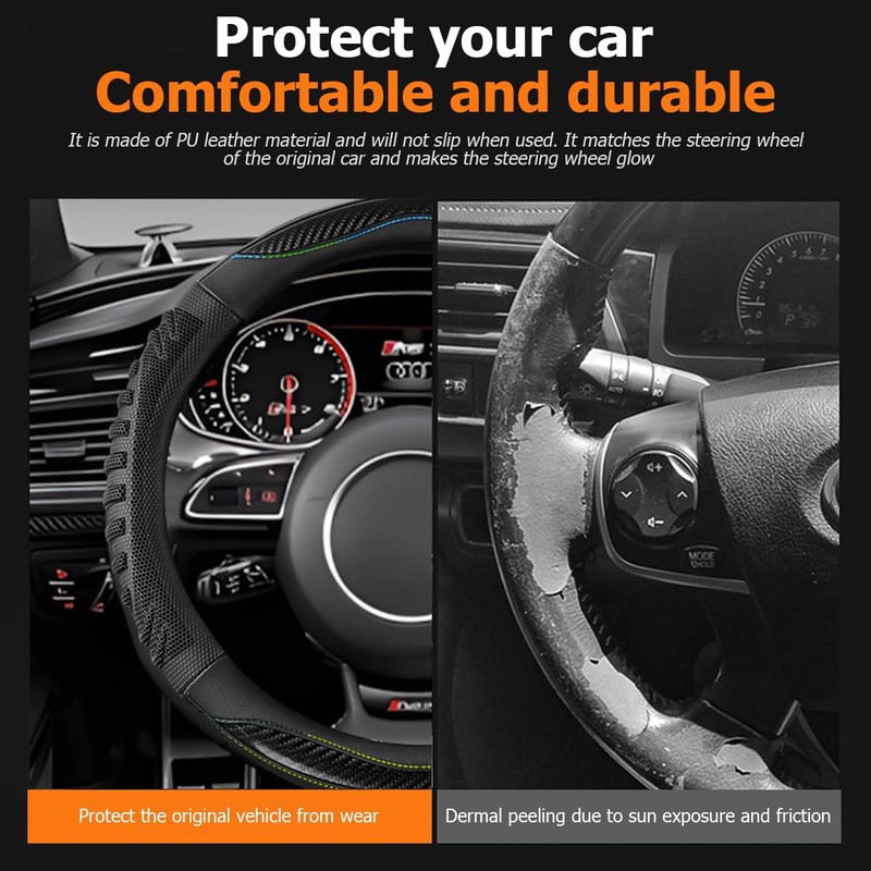 - Efficient Protection Function: This car steering wheel cover can effectively protect the steering wheel from daily wear and scratches. As a protective barrier, it not only helps to keep the car steering wheel, but also provides a comfortable touch to ensure a good driving experience. At the same time, it can add a fashionable element to your car interior.
