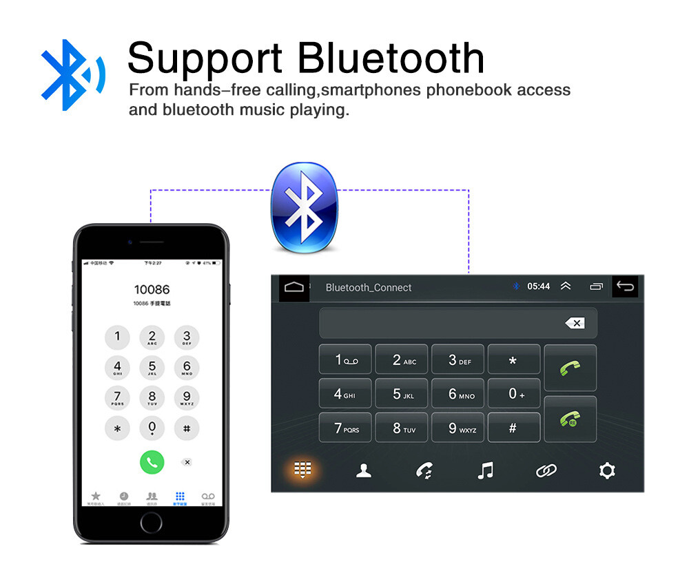 ●Built-in Bluetooth with A2DP/Hands Free/Phone book:Bluetooth hands-free calls,Bluetooth music player,Auto loading phonebooks