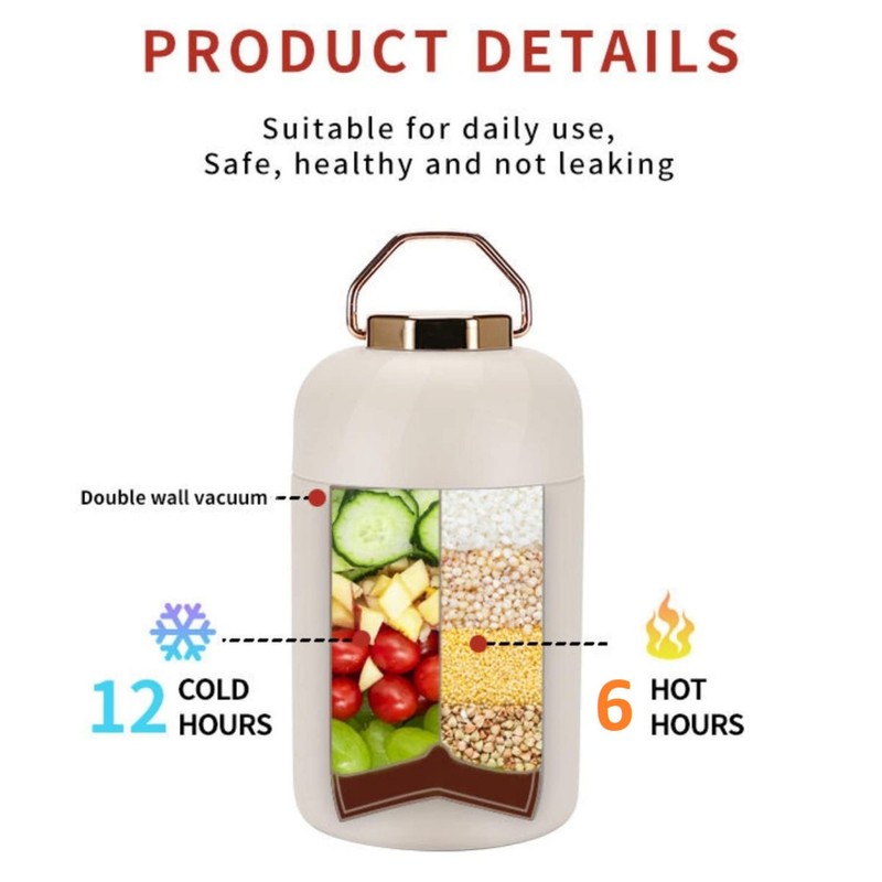- Stainless Steel Insulated Lunch Container: KHOBISOFT Food Double Lids Insulated Food Jar Stainless Steel material outer lid can be used to hold food, also great for insulation and leak proof you will have a great time every lunch.