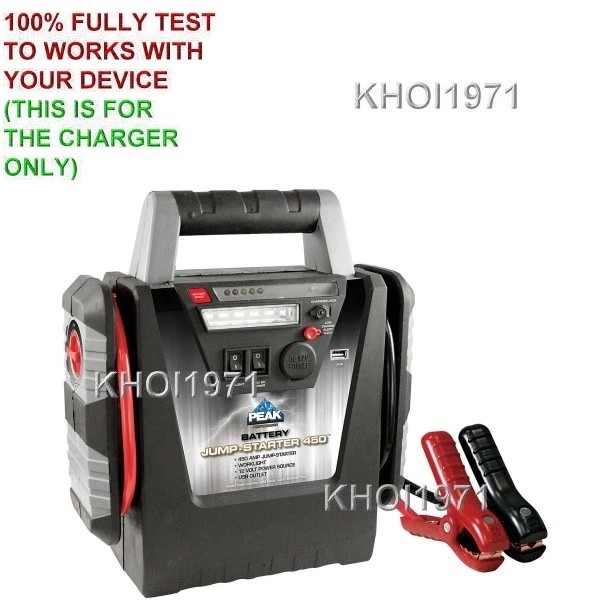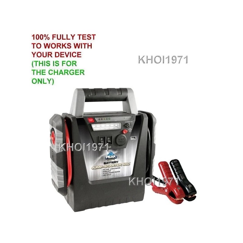 Works with: SEE PICTURE COMPATIBLE MODEL# BLACK GREY-TRIM Peak 450 Amp Jump Starter Portable Power Station home wall house charger AC adapter power cable