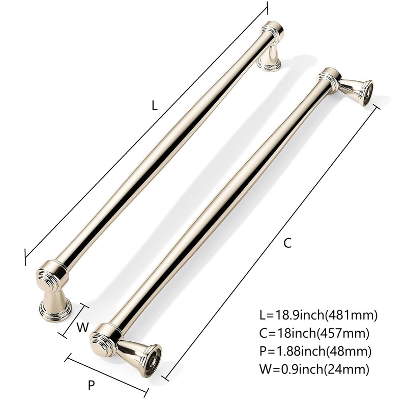 - appliance pulls Size hardware: Overall Length: 18.9inch; Width: 3/4 inch;Projection: 1-9/10 inch; Screw-hole center: 18 inch.