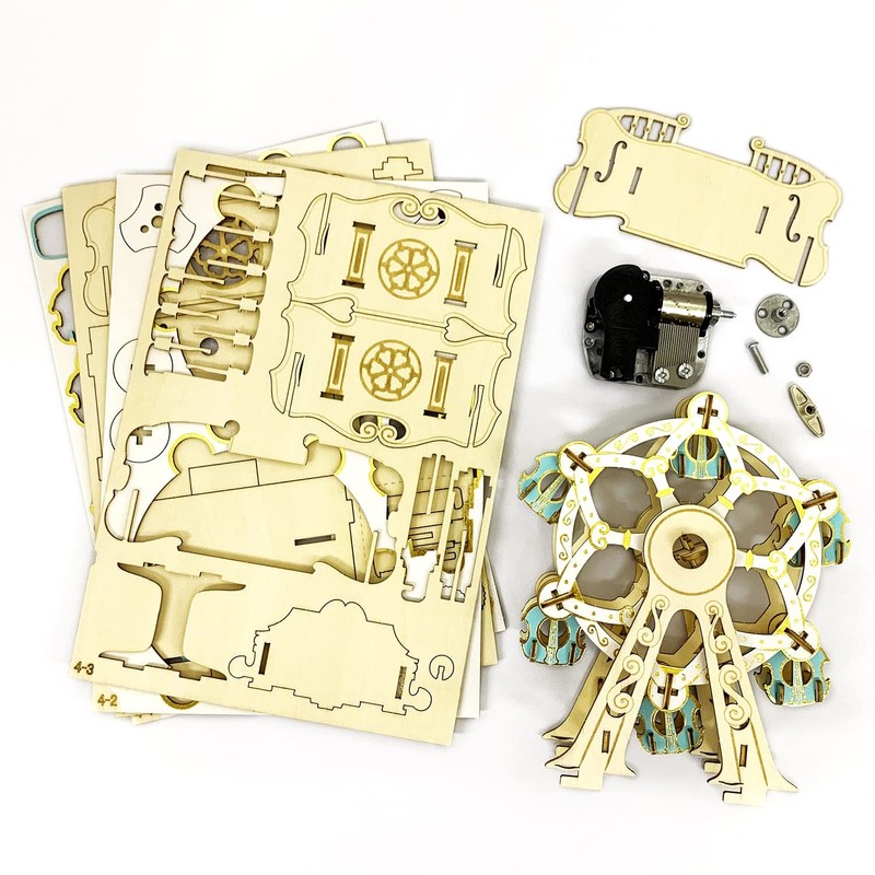 ki-gu-mi Ferris Wheel Musical Box, Enjoyable by Elementary School Students and Adults, Wooden 3D Puzzle, DIY Craft Kit, Educational Toy for Boys and Girls, 3D Art, Great as a Gift for Adults