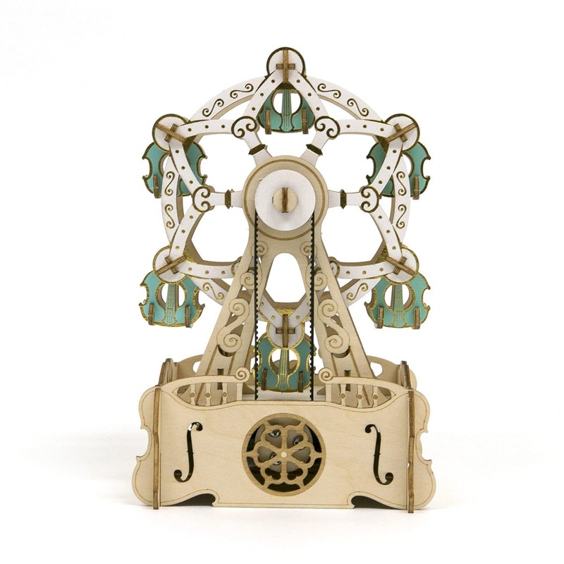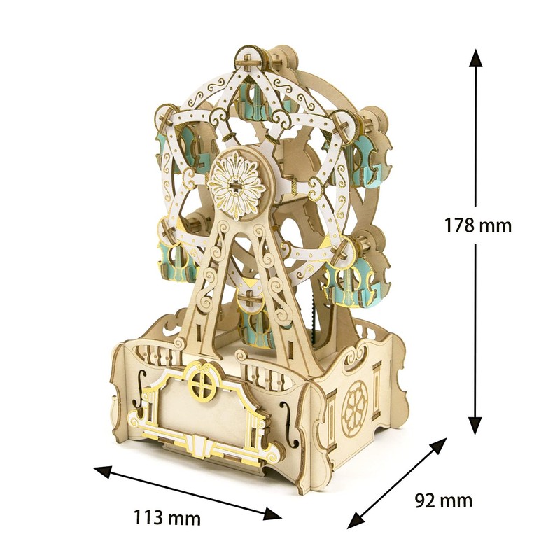 ki-gu-mi Ferris Wheel Musical Box, Enjoyable by Elementary School Students and Adults, Wooden 3D Puzzle, DIY Craft Kit, Educational Toy for Boys and Girls, 3D Art, Great as a Gift for Adults