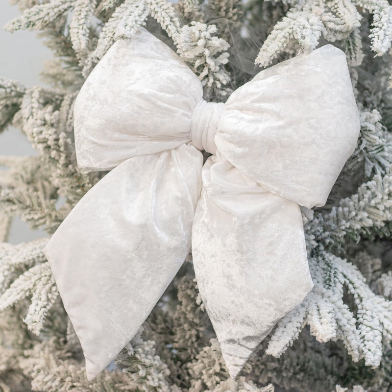 KI Store Pack of 2 Christmas Bows White Large 41 cm Velvet Bows & Ribbons Tree Decoration