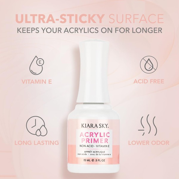 - Say goodbye to lifting with Kiara Sky's acrylic nail primer. This innovative, brand new formula is all about building a beautiful, love triangle between itself, your nail, and acrylic powder. With an odor-free, acid-free application, our acrylic nail primer creates an ultra-sticky surface that keeps your acrylics on for longer