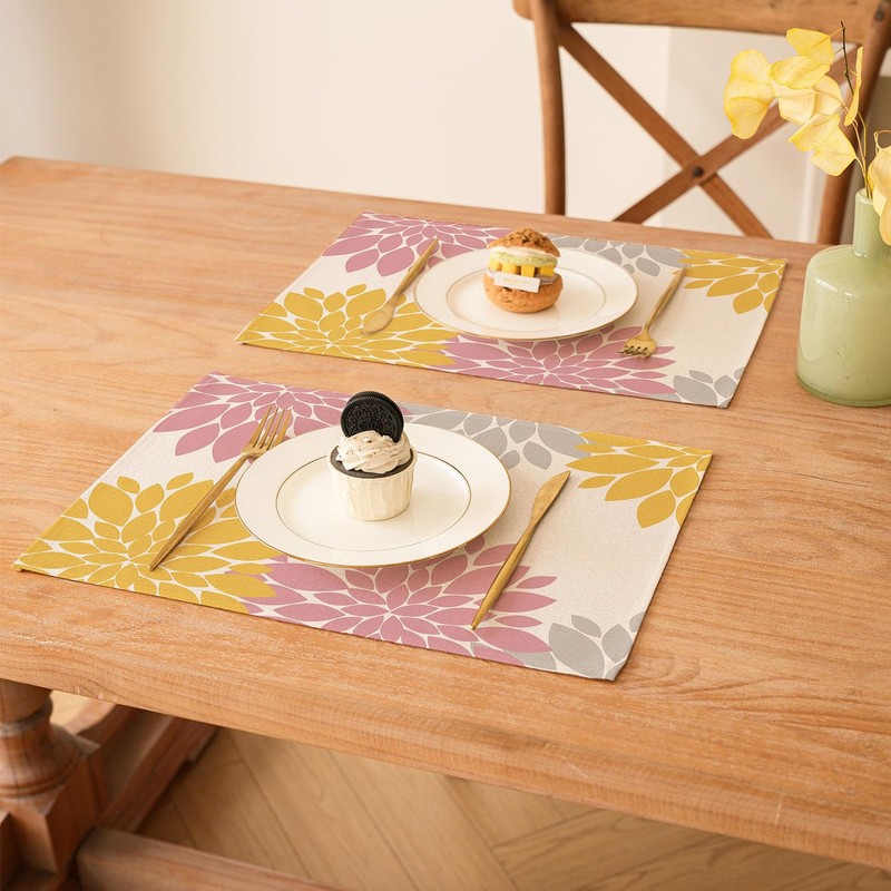 - Seasonal decoration: through digital transfer printing, the pattern of the Dahlia flowers placemats will be vivid and bright, it will not fade or run and add some decor to your tabletop, match with any tableware, dinnerware, napkins, table runner, tablecloth and centerpieces