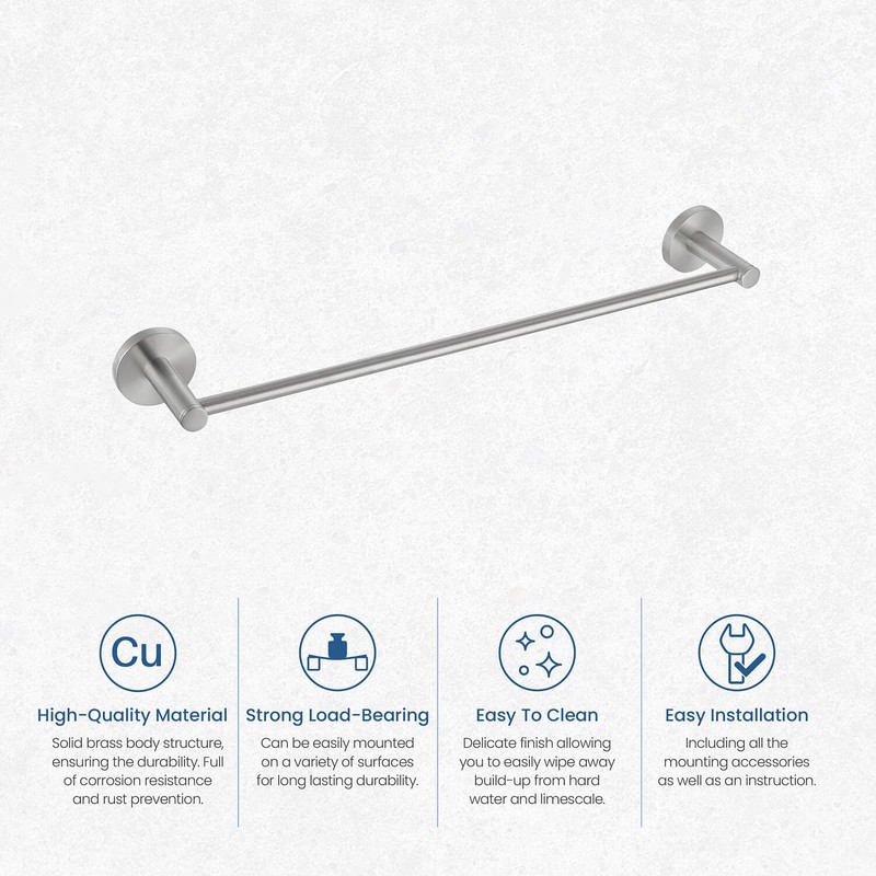 KIBI Circular 18 inch Bath Towel Bar, Solid Brass Wall Mounted Modern Bathroom Towel Bar, Bathroom Towel Hanger (Brushed Nickel) (KBA1407)
