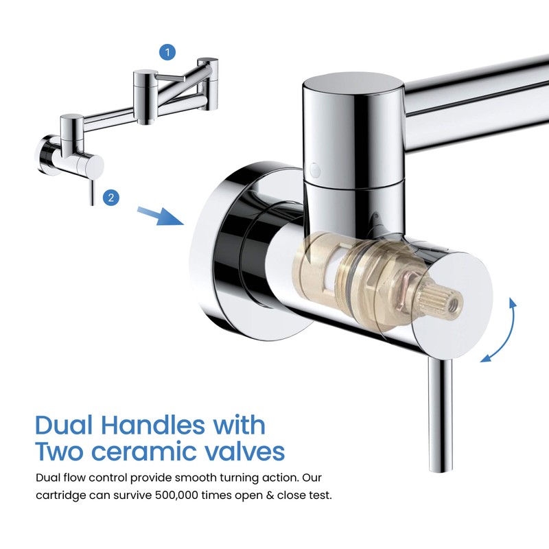 KIBI Circular Pot Filler Faucet | Wall Mount Kitchen Faucet | Solid Brass, 360 Degree Swivel, Single Handle, Hot and Cold Water | Kitchen and Bar Use | Chrome Finish (KPF601)