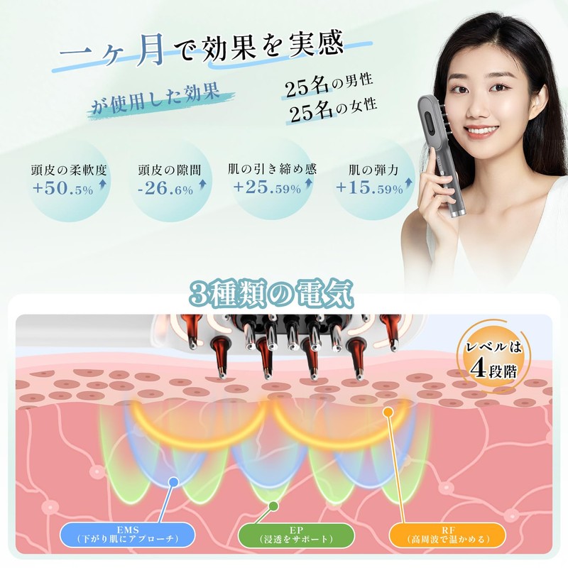 - (3 Types of Electricity) The 10 electrode pins allow the EMS, RF, and EP alternating output to achieve a multi-directional and intensive approach to the skin. EMS provides a weak current to effectively approach the scalp and skin to make your face look upward. The concentrated approach to RF function (radio wave) provides a firm heat to the stratum layer of your skin, making it easy to treat, and it is full of firmness skin. The power of EP function ensures that your beauty ingredients are fully delivered. It approaches skin and scalp problems to give you a refreshing scalp and full of firmness and gloss