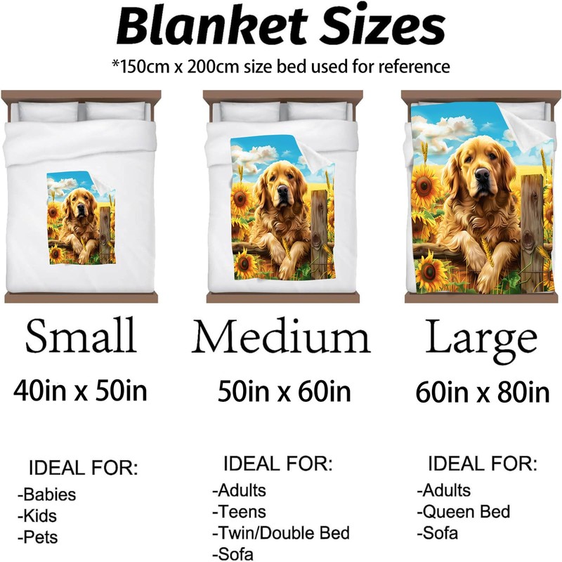 Kibue Golden Retriever Dog & Sunflower Blanket, Soft & Warm Flannel Throw, Cozy Plush Lightweight Blankets for Travel, Sofa, Bedroom, Office for Adults Kids for All Seasons 60"×50"