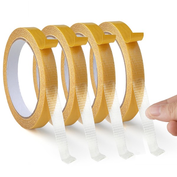 kicder 4 Rolls Double-Sided Fabric Tape Heavy Duty – Fabric Hemming Tape No Sew, No Iron for Pants Clothes, Curtains, Carpets & DIY Projects. Removable, Residue-Free, 0.5in x 33FT (10m)