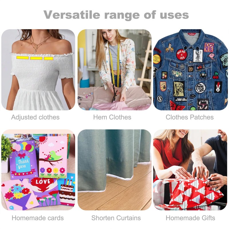 - Strong & Clean Adhesion: Reinforced fiber mesh with high-strength grip secures fabrics (curtains, hems, crafts) without residue or surface damage.