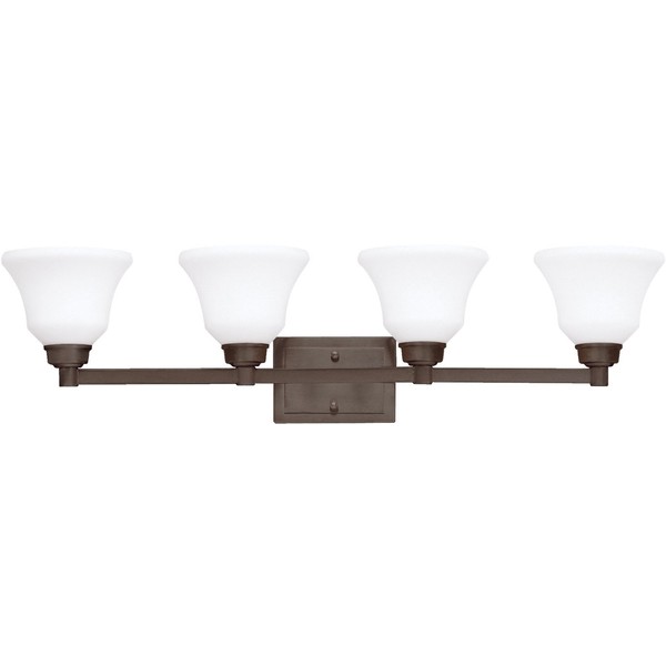 - What's in the Box: (1) Mounting Strap, Strap Mounting Screws, Hex Nuts, Nipple, Wire Nuts and (4) Glass Shades. Bulb(s) not included.