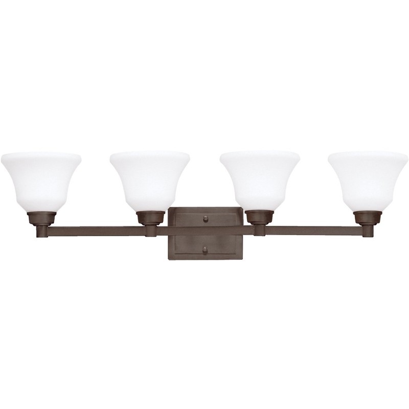Kichler Langford 35" 4 Light Vanity Light with Satin Etched White Glass in Olde Bronze®