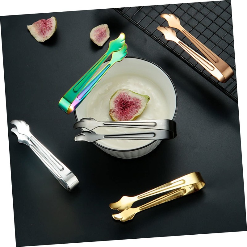 KICHOUSE 5pcs Stainless Steel Ice Tongs Multi-Purpose Dessert Tongs for Sugar Cubes Ice Cubes and More for Parties Weddings and Daily Use