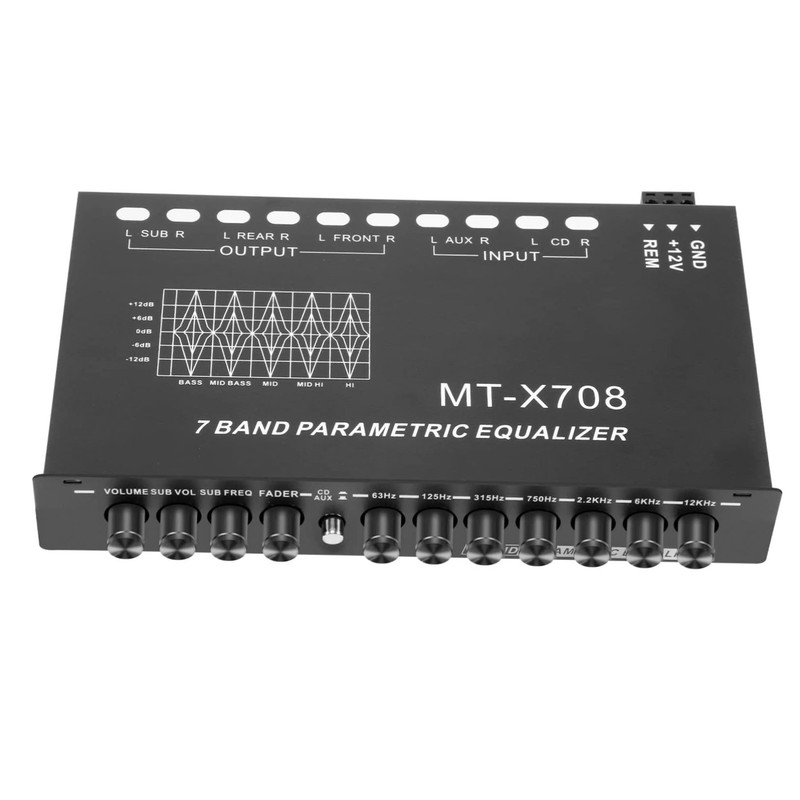 7 band Car equalizer Whether you're listening to music, podcasts, or radio, the equalizer can suit your needs.grapfic equalizer This device allows you to fine-tune the audio frequencies for balance.digital processor The car equalizer is an essential component for any car audio enthusiast looking to upgrade their vehicle's sound system