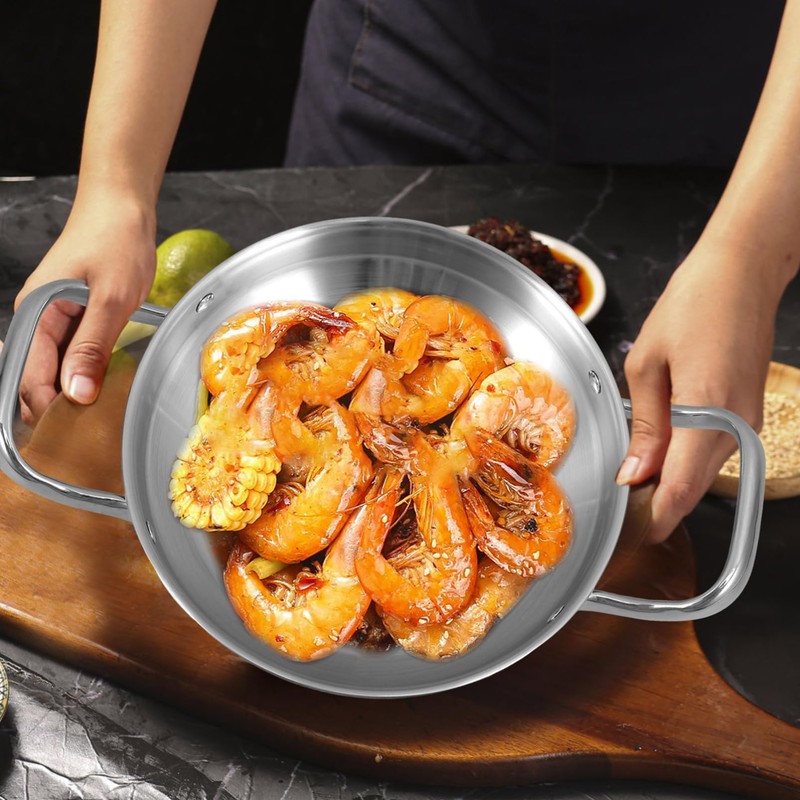 Kichvoe Small Hot Pot with Double Handles Cooking Pot for Kitchen Restaurant Home Use Non- Design Compact and Easy to Carry for Seafood and More