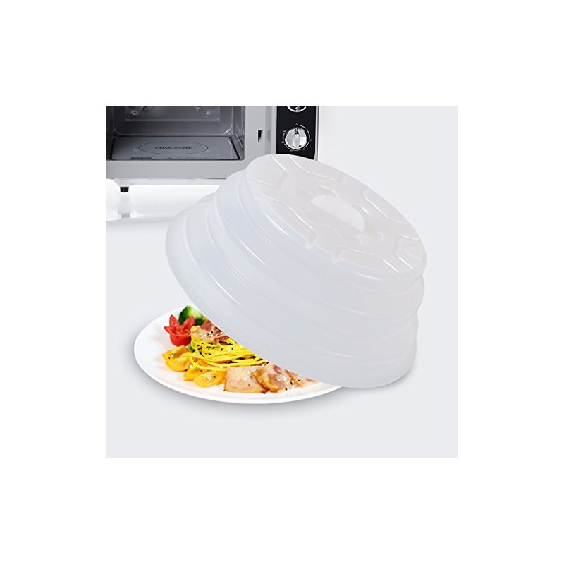 - Fits Most Microwave Ovens - 11" diameter and 3.8” height when expanded. Tall enough to not touch the food in most cases and big enough to cover most standard plates