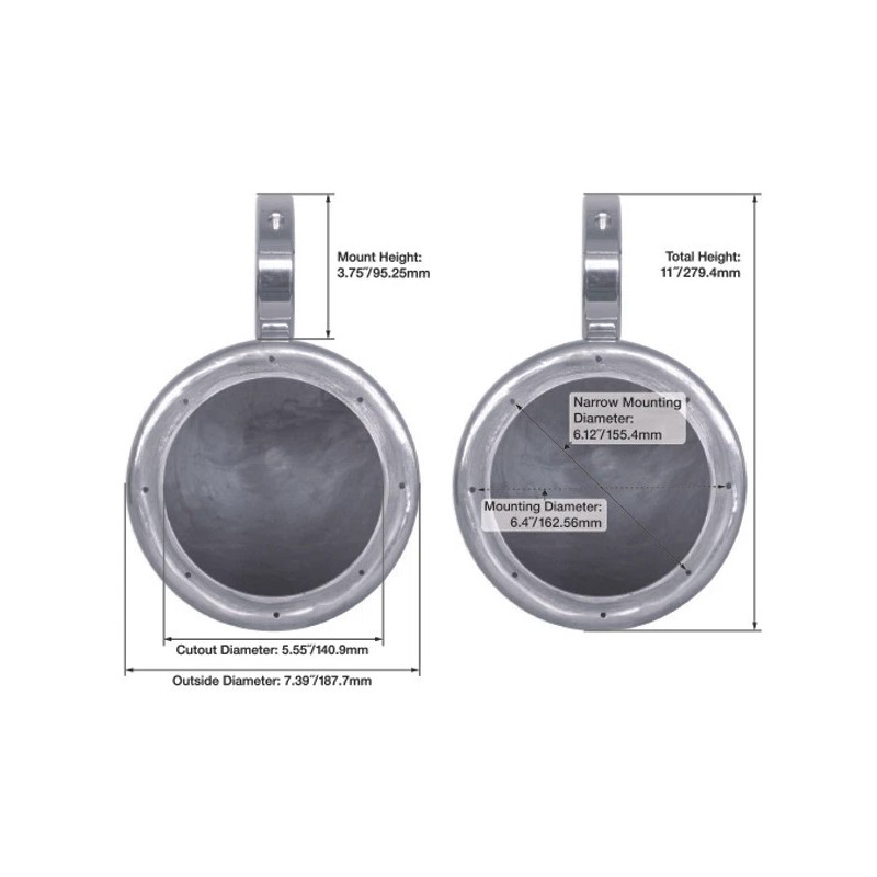- Mounting diameter - 6.4" (Narrow diameter - 6.12")